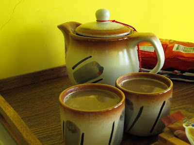 卻給我一個泡茶用的茶壺+兩個喝茶的小杯子